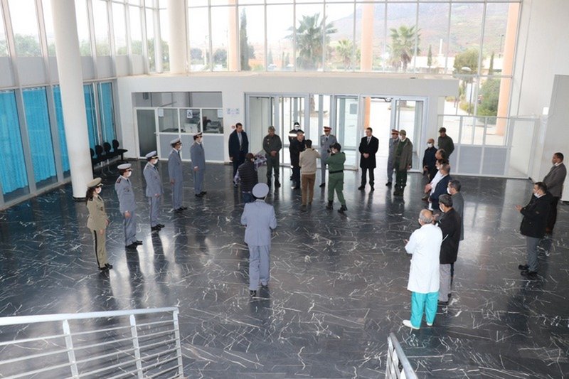 En application des Hautes Instructions de S.M le Roi Mohammed VI, Chef Suprême et Chef d’Etat-Major Général des Forces Armées Royales (FAR), afin que la médecine militaire prenne part conjointement avec son homologue civile à la délicate mission de lutte contre la pandémie de Covid19 ; le Gouverneur de la Province de Khénifra ; Mr Mohammed Fettah accompagné des chefs de services de sécurité provinciaux, a assisté à la prise de contact de l’équipe multifonctionnelle des FAR avec son homologue relevant du centre hospitalier de Khénifra et ce, en présence du représentant du commandant d’armes délégué de la place de Béni-Mellal,