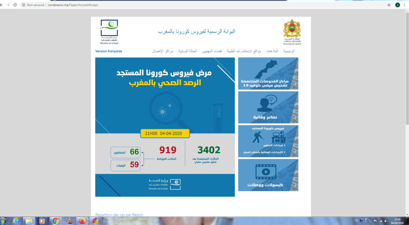Le nombre de rémissions s’est établi à 66, avec la déclaration d’un nouveau cas de guérison, alors que le bilan des décès s’élève à 59, précise le ministère sur le portail “www.covidmaroc.ma”.