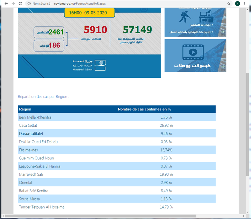 وزارة الصحة: فيروس كورونا.. تسجيل 199 حالة مؤكدة جديدة بالمغرب والعدد الإجمالي يصل إلى 5910 حالة
