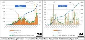 Figure 1 : Évolution quotidienne des cas de COVID-19, au Maroc et en Jordanie du 02 mars au 30 juin 2020