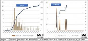 Figure 3 : Évolution quotidienne des décès liés à COVID-19 au Maroc et en Jordanie du 02 mars au 30 juin 2020