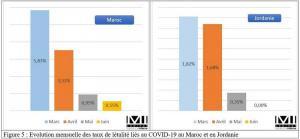 Figure 5 : Evolution mensuelle des taux de létalité liés au COVID-19 au Maroc et en Jordanie
