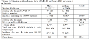 Tableau 1 : Situation épidémiologique de la COVID-19 au19 mars 2021 au Maroc et en Jordanie