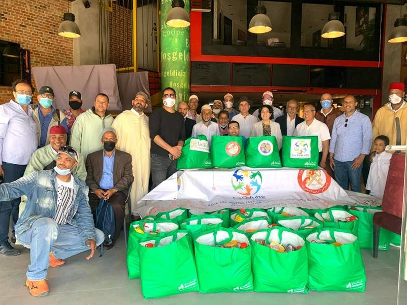 Six associations représentant les différents Hlaykias de la place ont bénéficié d’une enveloppe budgétaire globale de l’ordre de 60000,00 Dhs repartie entre les six associations à raison de 10000,00Dhs par association et de 36 paniers alimentaires comme contribution des clefs d’or répartis notamment entre ces six associations de hlaykias chargées de la distribution des Dons au profit de leurs adhérents hlaykias respectifs.
