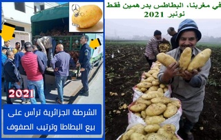 ولا حديث في الشارع الجزائري، هذه الأيام، إلا عن « البطاطا »، كما جاء في جريدة الشروق العسكرية، « حيث الذهول والتعجب من أسعارها المتزايدة يوما بعد يوم، يطرح ألف سؤال.. صدمة تطبع يوميات المواطنين البسطاء وحتى ميسوري الحال، واستفهام يبقى مطروحا، ففي الوقت الذي أطلقت فيه وزارة الفلاحة والتنمية الريفية، مع بداية شهر أكتوبر الماضي، عملية تصريف مخزون البطاطا من أجل تحقيق استقرار تموين الأسواق وضبطها، في إطار نظام ضبط المنتجات الفلاحية ذات الاستهلاك الواسع، يبلغ سعر الكيلوغرام من البطاطا 150دينار جزائري (15 درهم) كسابقة في تاريخ سوق هذه المادة الغذائية التي كانت أرخص الخضروات سعرا ».