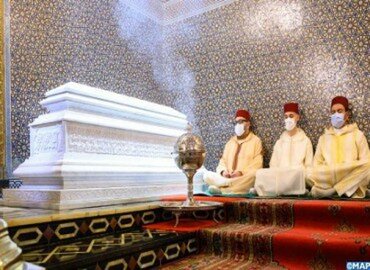 Sa Majesté le Roi Mohammed VI, Amir Al-Mouminine, que Dieu L’assiste, accompagné de SAR le Prince Héritier Moulay El Hassan et de SAR le Prince Moulay Rachid, a commémoré, lundi 09 Rabii II 1443 de l’Hégire, correspondant au 15 novembre 2021, au Mausolée Mohammed V à Rabat, l’anniversaire de la disparition de Feu SM le Roi Hassan II, que Dieu l’entoure de Son infinie miséricorde.