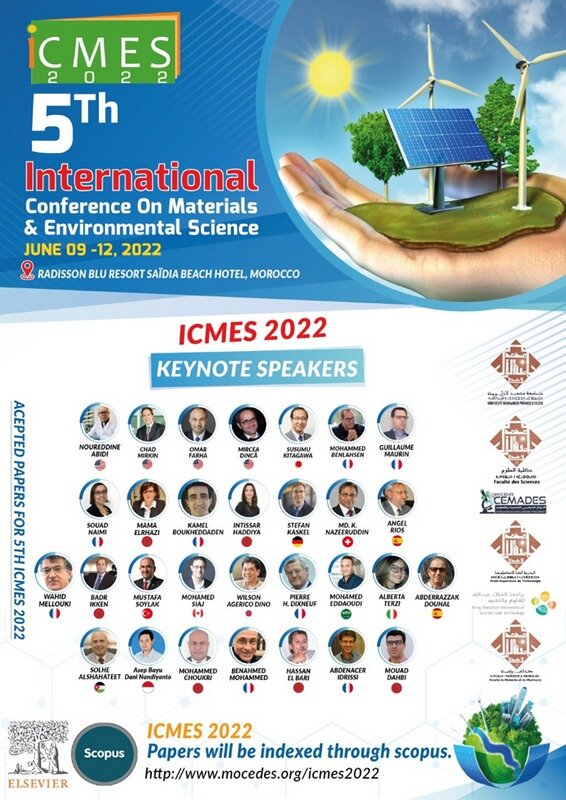 قريبا ستستقبل المدينة السياحية السعيدية علماء مرموقين وبارزين جدا في العالم في المؤتمر الدولي الخامس لعلوم المواد والبيئة – ICMES’2022- خلال اربع أيام من 09 إلى 12 يونيو 2022.