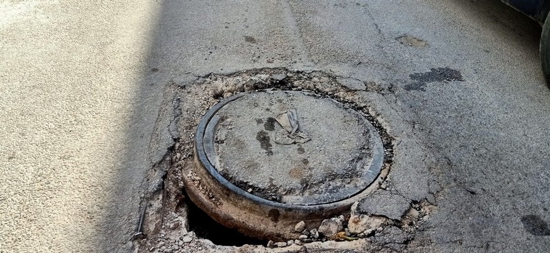 البالوعات المسروقة أو المختفية أو المهترئة التي تكسرت بسبب ثقل المركبات من شاحنات وسيارات وهوندات ودراجات ثلاثة العجلات وعربات مجرورة محملة تخلف حفرا تشكل خطرا على المرتادين من مواطنين راجلين أو سائقين أو عابرين وأطفال صغار.