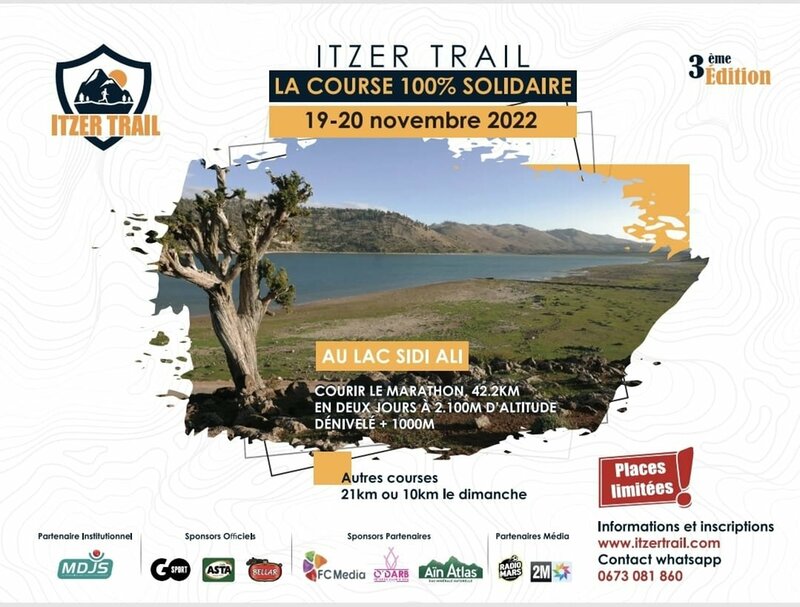 Après le succès des deux premières éditions (mai 2021 et mai 2022) ; « ITZER TRAIL », la course 100% solidaire, persiste et signe avec l’organisation d’une troisième édition, les 19 et 20 novembre 2022 prochains au Lac d’Aguelmam Sidi Ali relevant de la collectivité territoriale d’Itzer, au cœur du Moyen Atlas.