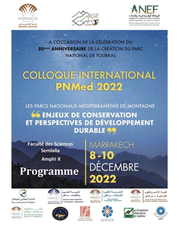 تخليدا للذكرى الثمانين لإنشاء المنتزه الوطني لتوبقال ، تنظم الوكالة الوطنية للمياه والغابات (ANEF) بشراكة مع جامعة القاضي عياض بمراكش ندوة دولية ، تحت شعار « المنتزهات الجبلية الوطنية المتوسطية: تحديات المحافظة وآفاق التنمية » و ذلك في الفترة ما بين 08 و 10 دجنبر 2022 الجاري.