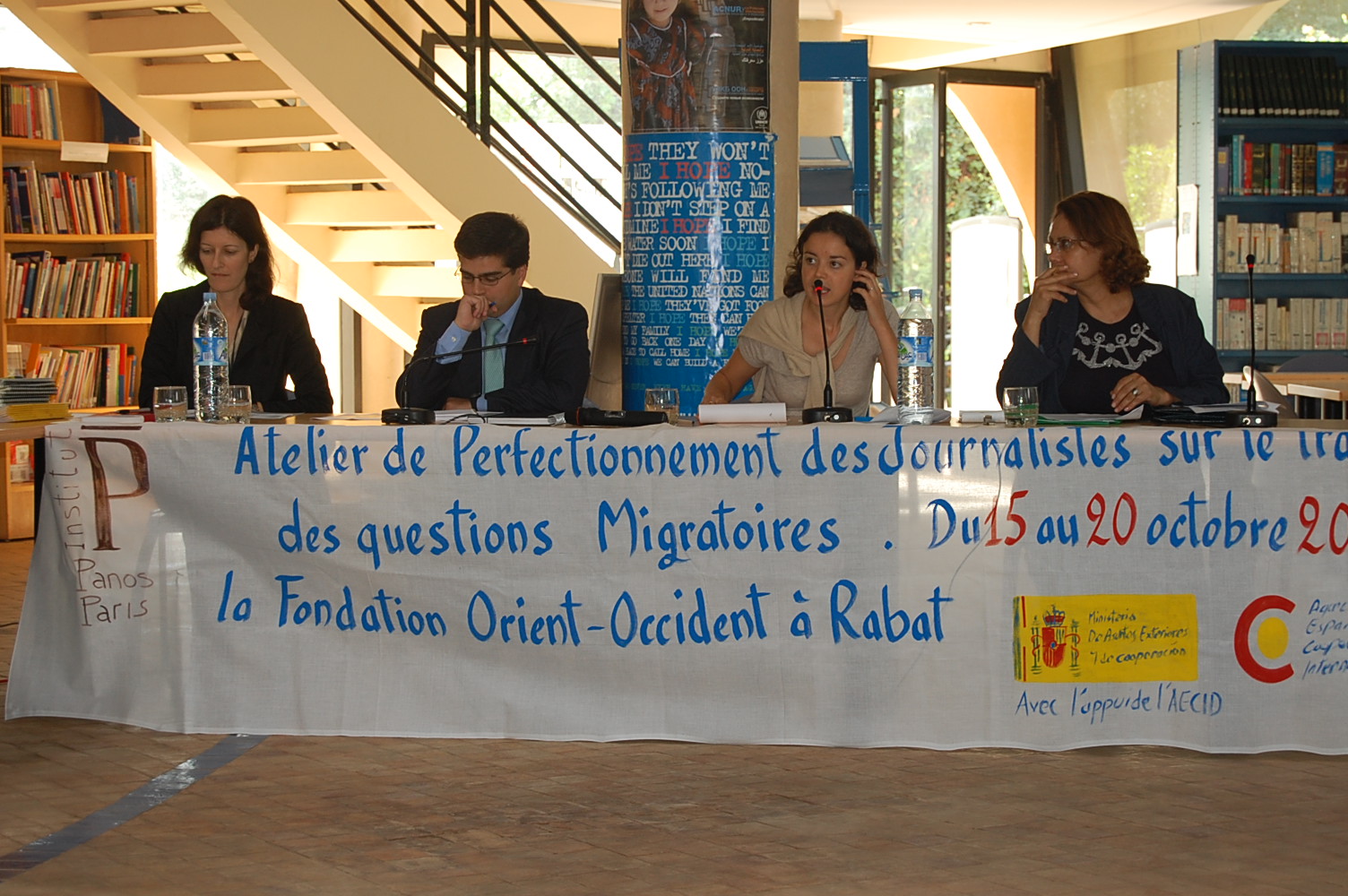 « Cet atelier de perfectionnement des journalistes sur les questions migratoires  réunit une vingtaine de journalistes du Maroc, d’Algérie, d’Espagne, de France et d’Afrique subsaharienne. Ils porteront  un regard critique  professionnel sur le traitement médiatique de cette épineuse question. Cet atelier permettra aux journalistes d’explorer toutes les dimensions que revêt cette question tant sur les plans politique, économique, social et géopolitique… » explique Pascal Berqué, directeur des programmes parrainés par l’Institut Panos Paris, dont cette  formation a été organisée par l’Institut Panos Paris en partenariat avec la Fondation Orient Occident, du 15 au 20 octobre 2008 à Rabat  , et à laquelle ont pris part 20 journalistes de sept pays concernés par la migration, notamment de l’Afrique subsaharienne, du Maghreb,de l’Espagne et de la France .