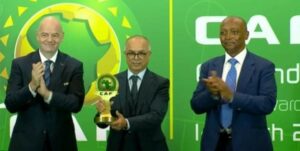 انطلق بالعاصمة الرواندية كيغالي يومه الثلاثاء 14 مارس الجاري اشغال مؤتمر الفيفا 73 لكرة القدم، بحضور رئيس رواندا، بول كاغامي، و جياني إنفانتينو، رئيس “الفيفا”، ولجنة “الكاف” التنفيذية، والرؤساء الأعضاء في “الكاف”، وبعض نجوم كرة القدم العالمية من أساطير العالم ونجوم إفريقيا ، وتميز افتتاح هذا المؤتمر، بتسلم جائزة التميز الرياضي لأفضل إنجازات عام 2022، الممنوحة لجلالة الملك محمد السادس نصر الله وايده، من طرف الاتحاد الأفريقي لكرة القدم…وهي الجائزة التي تسلمها شكيب بنموسى وزير التربية الوطنية والتعليم الاولي والرياضة .