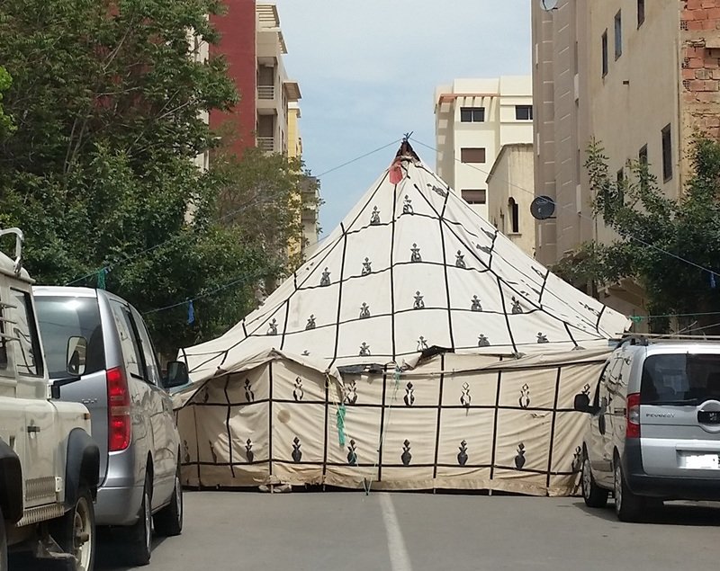ويعمد عدد من السكان إلى غلق منافذ زقاق أو طريق بالحي أو حتى الشوارع بواسطة حواجز وبدونها ودون سابق إنذار، ثم ينصبون خيمة تغطي الزقاق أو الطريق أو الشارع وفي بعض الأحيان إحدى الجهتين من طريق ثنائي قد يكون مسارا لخط حافلات النقل الحضري الذي قد يرغم السائق على تغيير الخط إلى آخر غير مؤمن، ضدا على القانون أو تجاوزا له، بمباركة من بعض السلطات المحلية والأمنية والمنتخبة بسبب صمتها وغياب ردود فعلها، رغم المخاطر العديدة والمتنوعة التي يشكلها هذا الوضع الغير الطبيعي.