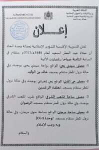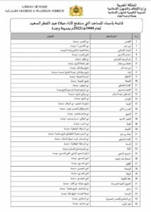 المندوبية الاقليمية للشؤون الاسلامية بعمالة وجدة انكاد : قائمة باسماء المساجد التي ستفتح لأداء صلاة عيد الفطر لعام 1444 بمدينة وجدة