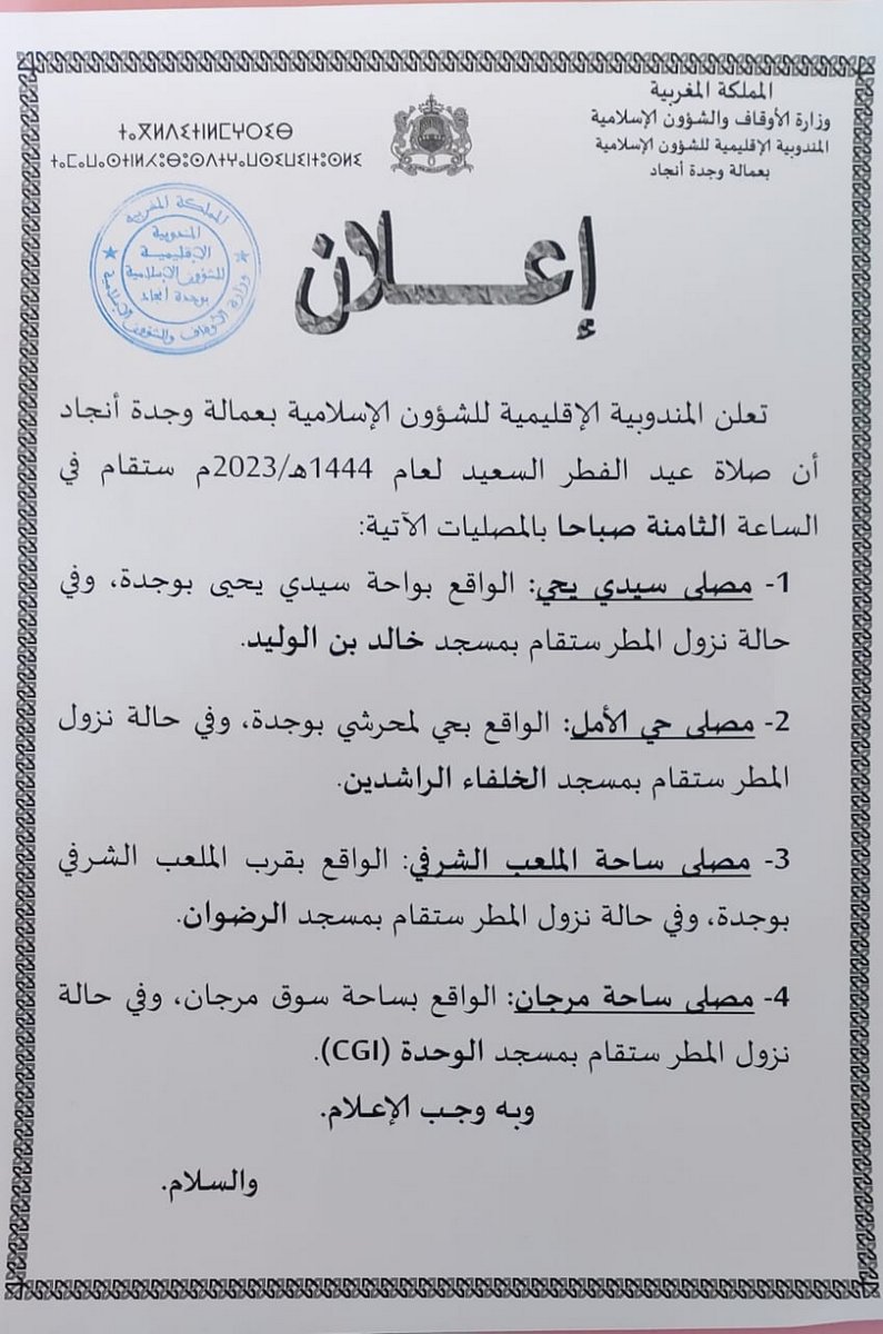 Home»المندوبية الاقليمية للشؤون الاسلامية بعمالة وجدة انكاد : قائمة باسماء المساجد التي ستفتح لأداء صلاة عيد الفطر لعام 1444 بمدينة وجدة»liste_des_mosquees1liste_des_mosquees12023-04-21/ 21/04/2023/0/ 560SharesFacebookTwitterPinterestGoogle+ Loading...Dans le même sujetفي نفس الموضوع