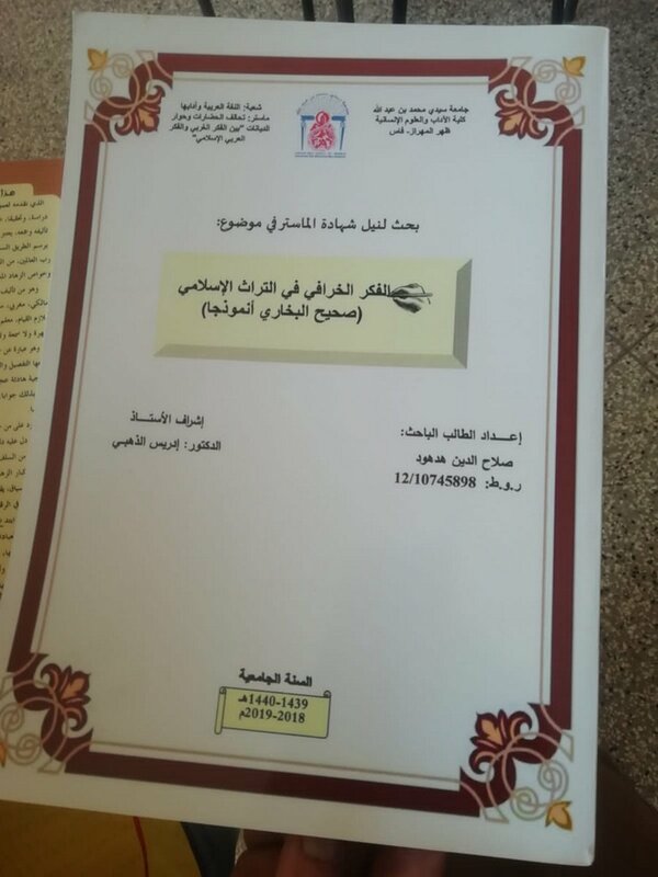 إنجاز أحد طلبة سلك الماستر بكلية الآداب والعلوم الإنسانية بفاس بحثا تجاسر فيه هو مشرفه على صحيح الأمام البخاري زاعما أنه أنموذجا للفكرالخرافي