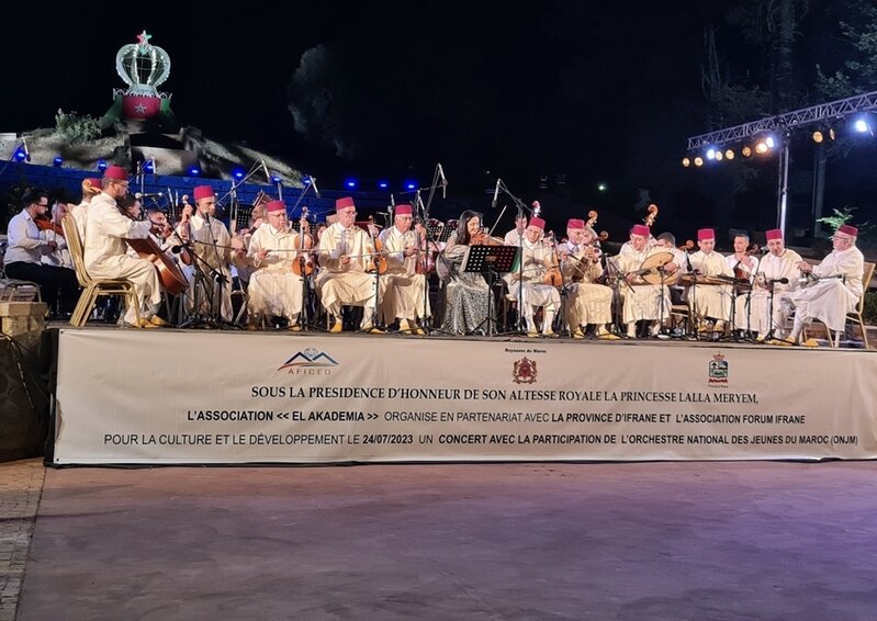 Sous la présidence d’honneur de SAR la Princesse Lalla Meryem, l’Association « EL AKADEMIA » a organisé Lundi 24 Juillet 2023un CONVERT avec la participation de l’orchestre national des Jeunes du Maroc (ONJM).
