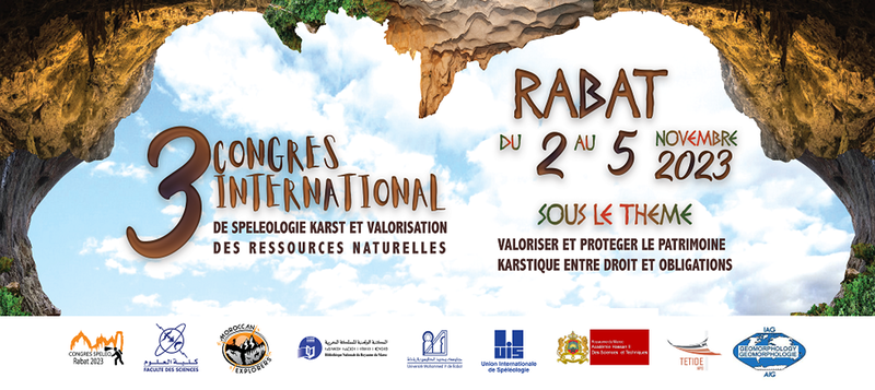 La Faculté des Sciences de l’Université Mohamed V de Rabat et l’Association Moroccan Explorers Society en étroite collaboration avec ses partenaires organisent la 3ème édition du Congrès International Scientifique du Karst, Spéléologie et Valorisation du patrimoine naturel du 02 au 05 novembre 2023 prochain à Rabat.