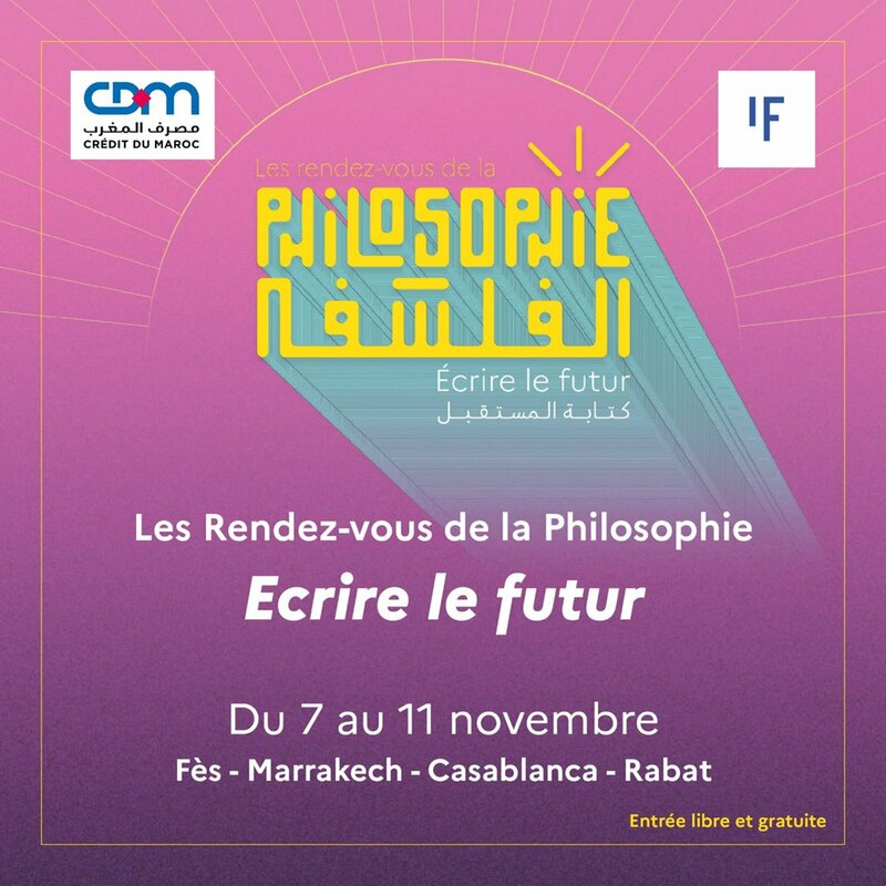 Dans le cadre des activités culturelles de l’Institut Français au Maroc au titre de la Saison 2023-24 ; les Villes de Fès, Marrakech, Casablanca et Rabat accueilleront : «Les Rendez-vous de la Philosophie» ; cette manifestation majeure de la programmation culturelle France-Maroc qu’organise l’Institut français du Maroc et ses partenaires du 7 au 11 novembre 2023.