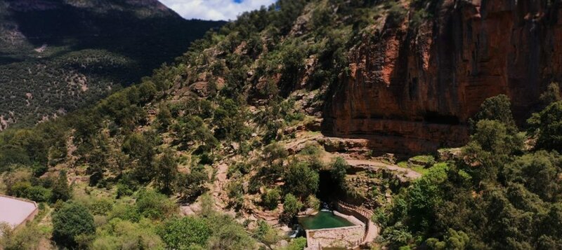 Aussi, le Site est traversé par un cours d’eau de grande qualité d’Oued Zegzel qui prend source dans les environs de Tafouralt. Il s’agit là de l’unique source permanente se trouve dans ce village ; elle est captée et coule dans des canaux artificiels, avec un débit d’étiage inférieur à 2 litres par seconde, elle arrive au lit du Zegzel au niveau d’une cascade, près de la Grotte du pigeon. Les eaux de la cascade se perdent dans le sol à moins de 200 mètres plus en aval.