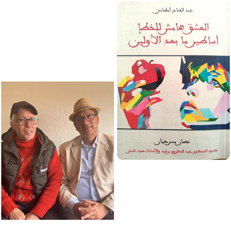 وإذا كان يحلو للكاتب أحيانا ،كما لبعض أصدقائه أن يلقبوا الدكتور عبد الفتاح بالكاتب العبثي ،فأنا شخصيا لا أميل إلى الانتصار لذلك التوصيف تماما. ليس لأن العبثية نظرية فلسفية للوجود تنبني على قناعة بأن الكون غير عقلاني ولا معنى له فحسب.بل لأن الجانب المشرق فيها يؤكد على منطقية صراع الذات مع المحيط في محاولة ممتدة للبحث عن المعنى. من هذا المنطلق وبعمق فكري رصين وانتصار للمبادئ والقيم الانسانية الراقية والنبيلة في بعدها الكوني يرسم منجزه الأدبي الأبطاني » العشق هامش للخطأ » و » أساطير ما بعد الأولين » هما نصان مسرحيان خصهما كل من الدكتور عبد الكريم برشيد والأستاذ حميذ تشيش بتقديم وارف وظليل .
