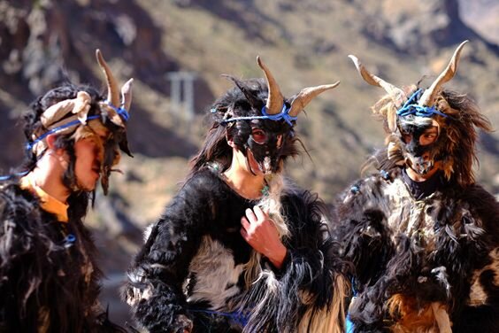 وهكذا،كان البعض يخفون وجوههم بأجزاء من الجلود والقرون التي تحولهم إلى أشباح بشرية ،تتعزز بتغيير نبرة الأصوات،حتى ليخيل للسامع والمشاهد وكأن جنسا بشريا قد حل بهم فجأة من كوكب آخر.