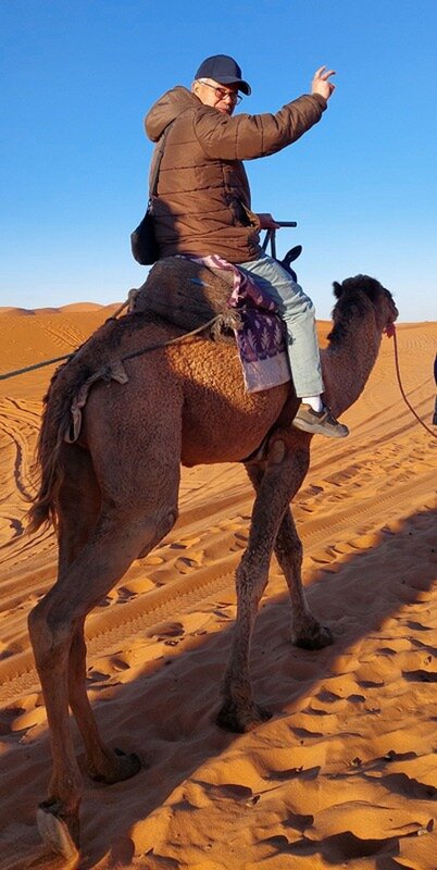 تعوّدتُ على رُؤية الجمال، وتقربت منها في “سوق الجِمَال“ بكلميم. ولكن حين امتطيت ظهر الجَمل أوّل مرّة، وتنقلت على ظهره بين كثبان رمال مرزوكة ذات الجَمال الرّباني الأخّاذ، رجعت بي الذاكرة إلى هجرة المسلمين من مكة إلى المدينة، واستحضرت لقطات من فيلم “الرّسَالة“، هو الذي استخدم فيه مصطفى العقاد عبقرية الفنية، وأبدع فيه مُمثلون ونجوم زمانهم في المسرح والسينما، من أمثال: عبد الله غيث، محمد أنور الجندي، مُنى واصف، سناء جميل، محمود السّباع، محمد وفيق، الطيّب الصدّيقي وآخرون. إنها رحلة طويلة في عُمق الصحراء بكل جبروتها حقا وحقيقة، كانت الرّحلة شاقة ومتعبة، ولكنها جميلة ورائعة. كانت تجربة فريدة تدعو إلى إعادتها لو لزم الأمر ثانية وثالثة ورابعة.