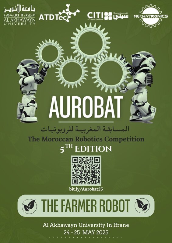 L’université Al Akhawayn d’Ifrane organise la 5ème édition de la Competition marocaine de Robotique : « Aurobat.2025 » sous le thèeme : « la robotique au service de l’agriculture » et ce ; le vendredi 30 et samedi 31 Mai 2025 au sein du Campus universitaire.