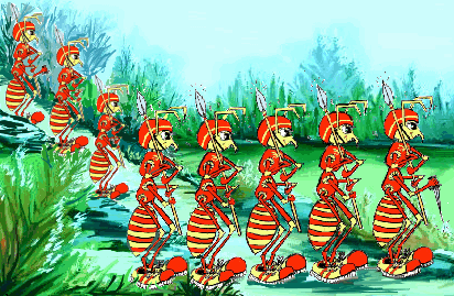 Elle a aussi une clef passe-partout pour circuler librement; on la rencontre même dans les salles d’opération les mieux protégées et les plus aseptisées des grands hôpitaux occidentaux. La fourmi vit dans des colonies de plus de 10 mille individus avec une activité incessante aussi bien de la part des myriades d’ouvrières que des soldates. Plusieurs espèces peuvent coopérer par solidarité en cas de conquête militaire et mobiliser ensemble des milliards de guerrières pour former une colonne à la file indienne de plus de 5000 kilomètres de longueur !!! Et cet insecte capable de soulever jusqu’à cinquante fois son poids reste inoffensif et même utile pour l’écosystème, malgré des ravages sur l’agriculture et malgré ses piqûres parfois douloureuses.
