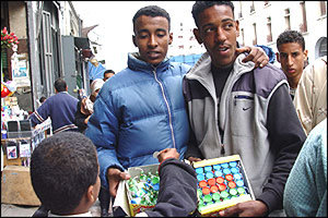 » زيدان …زيدان…بكية غير 5 دراهم…زيدان…زيدان غير 100 دورو (100 ريال)…محارق زيدان (مفرقعات زيدان)…محارق ميكي ماوس… » ينادي شبان على بضاعتهم من المفرقعات التي يعرضونها بساحة سيدي عبدالوهاب. « زيدان » هو اسم نوع من المفرقعات التي تعتبر من النوع الجيد وتنفجر كلها وبقوة تثير الانتباه ، بل وتزعج السكان والمارة الذين لم يألفوا دوي انفجاراتها. شبان يستغلون فترة الاستعداد للاحتفال بعيد المولد النبوي في تجارة رائجة لربح بعض الدراهم. ورغم أن هناك مظاهر أخرى للاحتفال بهذا العيد وبوسائل متنوعة كآلات الإيقاع من بنادير ودربوكات وتعاريج بالنسبة للفتيات، ولُعب من أسلحة بلاستيكية كالبنادق والمسدسات المائية أو الاليكترونية وغيرها إلا أن المفرقعات تبقى الوسيلة المفضلة لدى الأطفال والشبان حيث يكثر الطلب عليها، لذا يعمد بعض المتاجرين فيها إلى جلبها عن طريق التهريب سواء من إسبانيا عن طرق مدينة مليلية المحتلة، لكن هذه السنة يتم جلبها حسب ما صرح به لنا بعض الشبان المتاجرين فيها، من الجزائر كذلك. ومن جهة أخرى، يعمد بعض شبان الأحياء إلى صنع مفرقعاتهم بأنفسهم وبطريقة تقليدية بوضع مادة « الكاربيل » التي تستعمل في الإنارة التقليدية، في قنينات يضاف إليه شيء من الماء وتُشعل فتيلة متصلة بالغاز المنبعث من القنينة التي تنفجر محدثة دويا يُروّْع الحي ويُضْحِك الأطفال ويُفِْرحُهم…