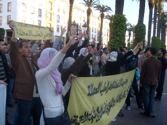 في إطار جهود حكومة صاحب الجلالة الملك محمد السادس نصره الله وأعز أمره لتسوية ملف حاملي الشاهادات العليا،تشيد حركة الموقعين باستجابة الحكومة للملف المطلبي للأطر المعطلة وذلك بتشغيل 1134 من حملة الشهادات العليا من مختلف التخصصات التعليمية والقانونية والاقتصادية.