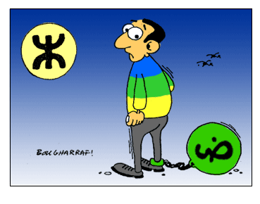 السلام على من اتبع الهدى و بعد والله انه عبئ ثقيل زاده اولائك الدين لا يريدون الا الربح من نشر الكتب الفارغة من كل فائدة علمية عبئ كبير على عاتق الاطفال المساكين و كان المحفظةالمغربيةخفيفة على ظهورهم حتى نزيدهم كتب الامازيغية.اما ثمزغث فقل بالله عليك مالفائدة ان القنهالاطفال هم في امس الحاجة لاتقان لغة القران والانجليزية لغة كل اكتشاف علمي ثم انت المتحمس لهده اللهجة هل بامكانك ان تترجم الكلمات التي تنطقها بالعربية مديعة النشرة بالامازيغية حيث عجزت هي و مدير النشرة عن ايجاد الكلمات الامازيغية التي تقابل الكلمات العربية مثل المشروع البرنامج السدود الطائرة الامتخان والقائمة لا تنتهي. ولعلمك انا ريفي واعتز بهدا لكن لا ارضى ان ان يستهطر بنا احد.
