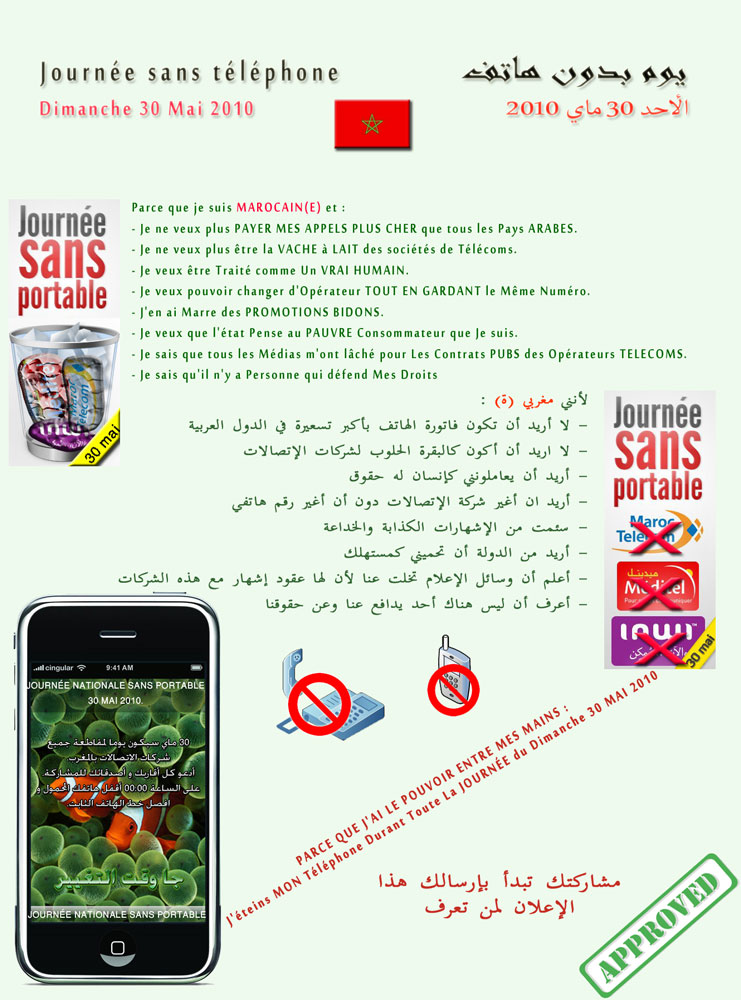 et PARCE QUE J’AI LE POUVOIR ENTRE MES MAINS : J’éteins MON Téléphone PORTABLE Durant Toute La JOURNÉE du Dimanche 30 MAI 2010.