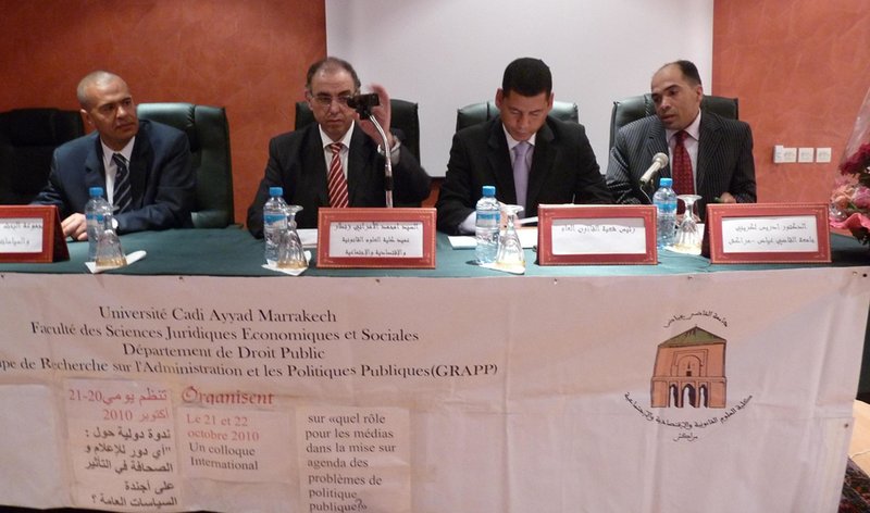 يومي الخميس والجمعة 21 و22 أكتوبر  2010بقاعة المحاضرات بكلية الحقوق؛ وذلك بمشاركة عدد كبير من الفاعلين والمهتمين والخبراء والباحثين في قضايا الإعلام والسياسات العامة من المغرب والأردن ومصر وفرنسا، وبحضور عدد كبير الأساتذة والطلبة والمهتمين ونساء ورجال الإعلام.