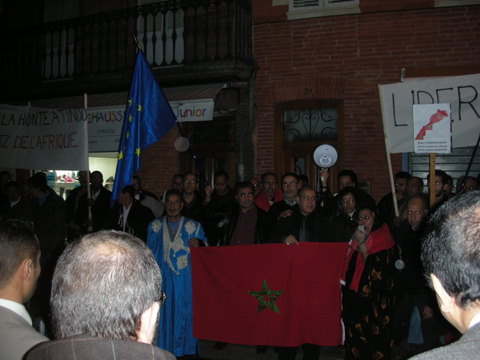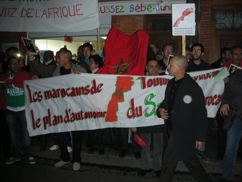 نظمت جمعية دعم مبادرة الحكم الذاتي بمدينة تولوز ونواحيها مساء يوم الجمعة 12 نونبر الحالي وبتنسيق مع مختلف الفعاليات الجمعوية المغربية بتولوز وقفة احتجاجية أمام قاعة سينيشال بساحة الكابيطول بتولوز احتجاجا على عرض فيلم معاد للوحدة الترابية حول وضعية حقوق الإنسان بأقاليمنا الجنوبية كانت تعتزم شرذمة من أتباع ما يسمى بالبوليساريو مدفوعين من طرف المخابرات الجزائرية عرضه بهذه القاعة في محاولة منهم لتغليط الرأي العام الفرنسي حول وضعية حقوق الإنسان بأقاليمنا الجنوبية.