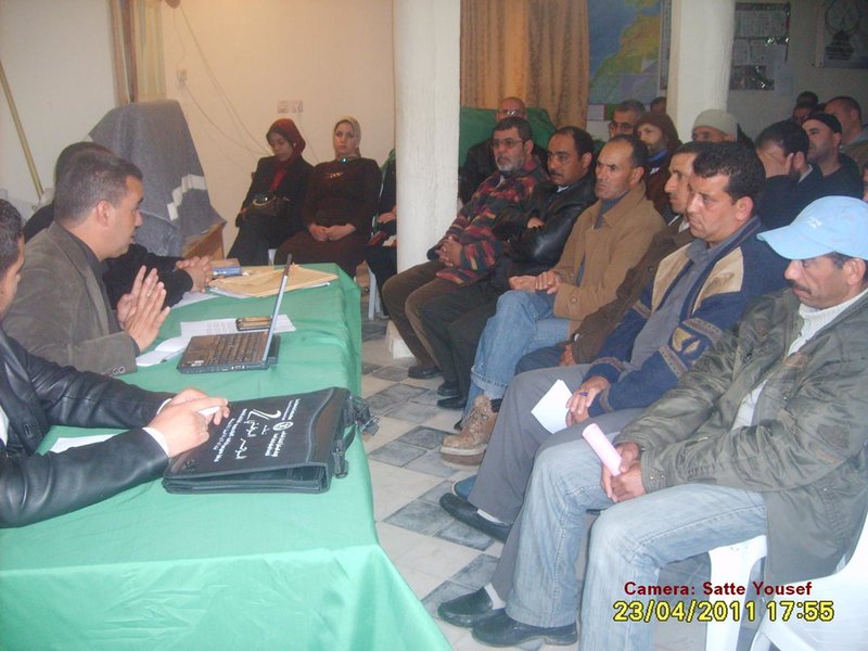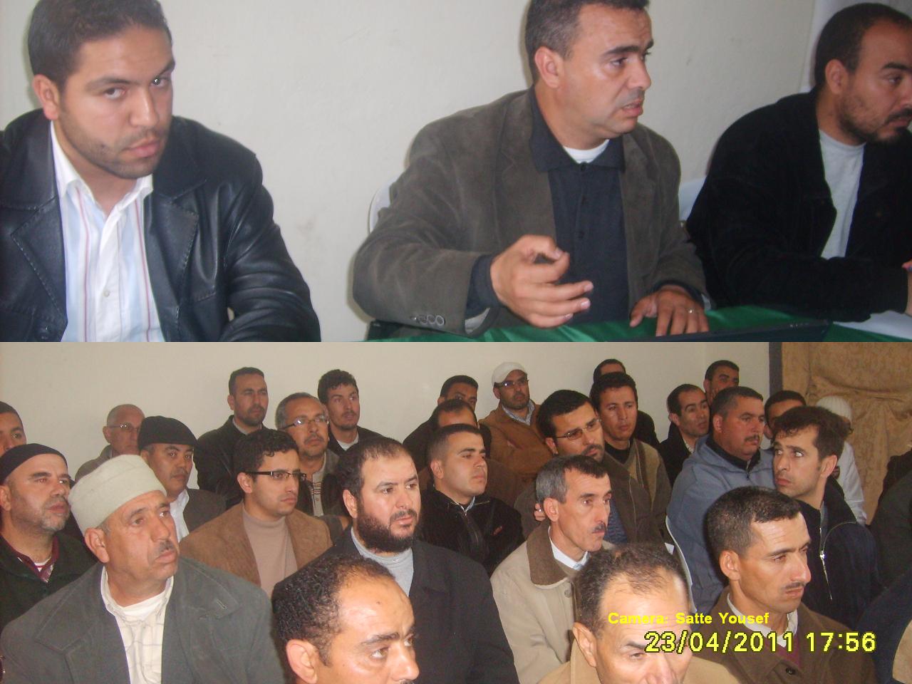نظم المكتب الاقليمي للاتحاد الوطني للشغل بتاونات يوم السبت 23ابريل 2011بمقر النقابة لقاءا تواصليا مع الاستاذ خالد السطي عضو المكتب الوطني للجامعة الوطنية لموظفي التعليم حيث استهل كلامه حول المستجدات الساحة التعليمية بالوضع الذي يعرف المغرب في سياق المتغيرات التي تشهدها المنطقة العربية، واعتبر الحكومة شبه مشلولة لا ترقى لتطلعات المغاربة عموما والشغيلة خاصة حيث انها غير منسجمة مع ذاتها، كما أنها لا تلتزم بما تم اتفاق عليه مع النقابات، كما انها تفاجئ النقابات ببلاغات انفرادية كما حصل السنة الماضية، وتطرق للاستقبال مستشار الملك للنقابات المركزية النقابية والتي وعد بايصال رسالتها بامانة لجلالة الملك.