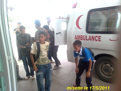 تعيش الثانوية الاعدادية ازريزر(10كلم عن تاونات) حالة استنفار بعد اصيب ازيد من 27 تلميذ وتلميذة بتسمم تناولهم وجبة الغذاء (دجاج، بطاطيس) بمطعم الاعدادية يوم الثلاثاء 17/05/2011 حيث تم نقلهم في سيارة الإسعاف الوحيدة وسيارات الجماعة وسيارة احد الأساتذة على وجه السرعة الى المستشفى الاقليمي بتاونات حيث اخضعوا للمراقبة الطبية المركزة ،وقد أكد الطاقم الطبي الذي يشرف على متابعة المصابين أن حالتهم لاتستدعي للقلق رغم أنهم يشتكون من مغص بالبطن والاسهال والوجع بالرأس وارتفاع درجة الحرارة والقيئ كما أرسلت المندوبية الاقليمية للصحة بتاونات طاقم طبي متعدد الاختصاصات إلى عين المكان بإعدادية لمتابعة والكشف على كل التلاميذ بعين المكان، وفور توصلهم بالخبر انتقل إلى عين المكان بالمستشفى الإقليمي كل المسؤولين الإقليميين بوزارة التربية الوطنية ووزارة الصحة العمومية وسلطات محلية وبعض الإعلاميين وممثلي الجمعية المغربية لحقوق الإنسان,وبعض ممثلي الهيئات السياسية بالمنطقة للوقوف عن قرب على حالات التلاميذ المصابين، للاشارة فقد تناول الوجبة ازيد من 150تلميذ وتلميذة بالمؤسسة وقد صرح التلميذ بالسنة الثامنة (ص.م) ان رفض مع زملائه تناول الوجبة لانبعاث رائحة منها لكن الحاح المسؤول جعله يرضخ فكانت النتيجة كما ترى واضاف التلميذ اننا لانتاول منذ مدة البيض والجبن وغيرها للانتهاء صلاحيتها وعلمت من مصادر موثوقة ان تلاميذ نظموا بالمؤسسة مسيرة احتجاجية قاطعوا الدراسة يوم الاربعاء 18ماي 2011 ومطالبين بمحاسبة المسؤولين عن هذا الحادث.