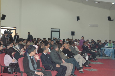 allocution adressée à une audience représentée essentiellement par des universitaires (étudiants et quelques professeurs intéressés). Le discours prononcé par le présentateur a mis la lumière sur les différents aspects de la vie du pays des Maures et son histoire, sa culture et son passé.