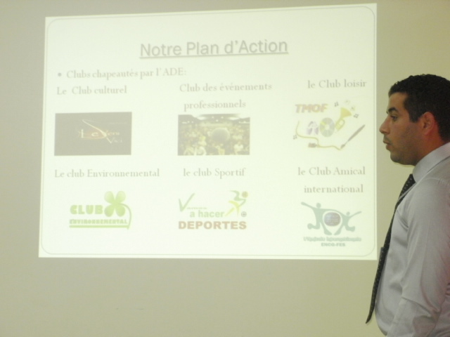 La première : « Le projet personnel et professionnel » expliquant comment à travers un diagnostic personnel des forces et faiblesses l’étudiant, futur employé, peut aboutir à la détermination d’un projet professionnel correspondant à son profil. La deuxième intervention visait l’optimisation de l’utilisation de l’Internet en tant qu’outil de recherche d’emploi. Enfin la troisième présentation portait sur portait sur la « question de la visibilité par les activités parascolaires » et la description de l’association « Ur voice » comportant huit clubs différents : environnemental, social, sportif, entreprenariat, culturel, amicale international, événements professionnels et loisirs.