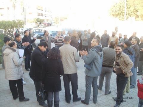 نظمت العصبة الاقليمية لأساتذة التعليم الابتدائي والاعدادي حاملي الاجازة بتاونات ، المنضوية تحت لواء الجامعة الوطنية لموظفي التعليم والتابعة للاتحاد الوطني للشغل بالمغرب، اليوم 28 دجنبر 2011، وقفة احتجاجية أمام النيابة الاقليمية للتعليم بتاونات تستنكر فيها سياسة صم الآذان التي تنهجها الوزارة الوصية اتجاه مطلب تغيير الاطار، وقد حضر هذه الوقفة عدد من رجال ونساء التعليم الذين أتوا من كل جهات الاقليم ليشاركوا في انجاح هذه المحطة النضالية،شاجبين سياسة الغموض والتشويش التي تتعامل بها الوزارة الوصية اتجاه مطالب هذه الفئة العريضة من نساء ورجال التعليم خاصة مطلب تغيير الاطار. وقد ألقيت كلمة باسم العصبة الاقليمية للاساتذة المجازين المنسق الاقليمي للعصبة الاقليمية الأستاذ اسحاق الحناوي الذي وجه فيها كلمة شكر للكتابة الاقليمية للجامعة الوطنية لموظفي التعليم بتاونات التابعة للاتحاد الوطني للشغل بالمغرب، والتي أبانت في عدة مناسبات عن تحملها المسؤولية كاملة اتجاه المطالب العادلة والمشروعة لفئة الأساتذة المجازين من نساء ورجال التعليم الابتدائي والاعدادي. كما وجه كلمة شكر لكل المناضلين والمناضلات الذ ين تحملوا عنا ء السفر وألتحقوا بمعتصم الوقفة للمشاركة في انجاح هذه المعركة البطولية.كما ثمن المنسق الاقليمي للعصبة الجهود التي قامت بها القيادات الوطنية للجامعة الوطنية لموظفي التعليم من أجل انصاف هذه الفئة العريضة من نساء ورجال التعليم، مهنئا كل المجازين والمجازات على ما تحقق لفائدتهم في ظل المستجدات والمكتسبات التي حصلوا عليها، ودعا كافة نساء ورجال التعليم الى التحلي باليقضة والحيطة والنضال الى حين تحقيق مطلب تغيير الأطار.كما ألقى الأستاذ جمال بيدر كلمة باسم الكتابة الإقليمية للجامعة الوطنية لموظفي التعليم هنأ فيها العصبة الاقليمية وكل مناضليها ودعاهم الى تكثيف الجهود حتى تحقيق مطالبهم العادلة والمشروعة،كما التزم بأن يكون سفير العصبة الاقليمية للمجازين وطرح ملف هذه الفئة بقوة بالمجلس الوطني للجامعة الوطنية لموظفي التعليم الذي سينعقد يناير من السنة القادمة.