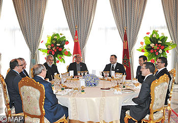 Etaient conviés à ce déjeuner, les membres de la délégation officielle accompagnant le président tunisien, ainsi que le Chef du gouvernement, M. Abdelilah Benkirane, les présidents des deux Chambres du parlement, des conseillers de SM le Roi, des membres du gouvernement, des officiers supérieurs de l’état-major général des Forces Armées Royales et d’autres personnalités.