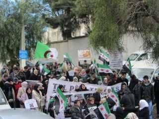 نظم العشرات من المواطنين السوريين بالجزائر مؤازرين بالعديد من ممثلي الجمعيات والاحزاب يوم الثلاثاء 07 فبراير 2012 وقفة احتجاجية امام السفارة السورية بالعاصمة الجزائرية تطالب فيها قادة الجزائر بطرد السفير السوري اسوة بالعديد من الدول العربية ،