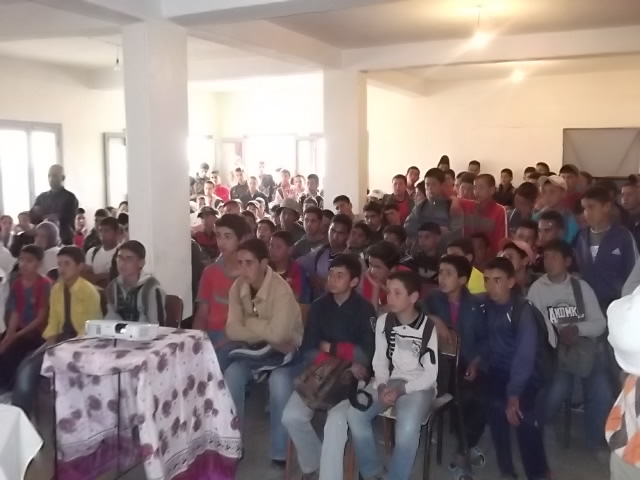ثم تناول الكلمة الأستاذ عبد العزيز الحفياني عضو المجلس ومدرس مادة الاجتماعيات، ليوضح للتلاميذ حالة الأرض منذ خلقها الله تعالى في البداية، وكيف سخرها للإنسان الذي كان عليه أن يحسن استغلال خيراتها باقتصاد وروية، ثم بين بأرقام وإحصاءات الأخطار التي تواجهها البيئة اليوم بسبب التواصل السلبي (التلوث، الاجتثاث، الاستغلال المفرط…) الذي يقوم به البشر تجاه الأرض ومواردها، ما أدى إلى حدوث كوارث وتغيرات مناخية، الخاسر الأكبر فيها هو الإنسان ومن معه من الكائنات الحية التي تعتبر سلسلة ضرورية في التوازن البيئي. واقترح بعض الحلول العملية البسيطة التي يمكن أن ننقذ بها الأرض من الدمار ونبقي على حق الأجيال اللاحقة في العيش الرغيد.