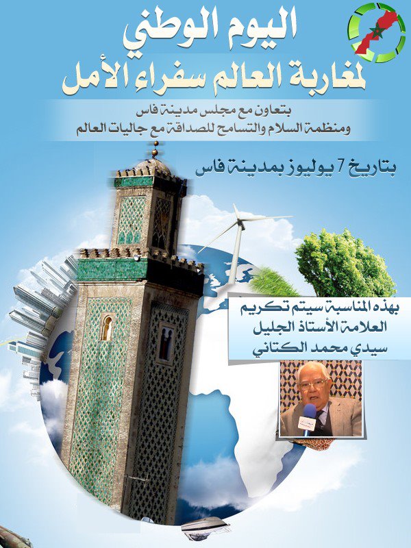 تستعد تنسيقية مغاربة العالم سفراء الامل لتنظيم اليوم الوطني لسفراء الامل يوم 7يوليوز من السنة الجارية يمدينة فاس التي تم استقبالها ضيف شرف الملتقى الثاني لمغاربة العالم سفراء الامل باسطنبول وخلال اليوم الوطني لسفراء الامل سيتم تكريم العلامة سيدي محمد الكتاني عضو اكاديمية المملكة المغربية كما سيوشح بشارة سفير امل كل من الفنانة الصحراوية رشيدة طلال والدكتور محمد الجدايني من ايناء الاقاليم اشرقية المخلصين والدكتور عبد الرحمن طنكوا رئيس جامعة القنيطرة والدكتورة وفاء الغيدوني عضو المجلس العلمي لطنجة