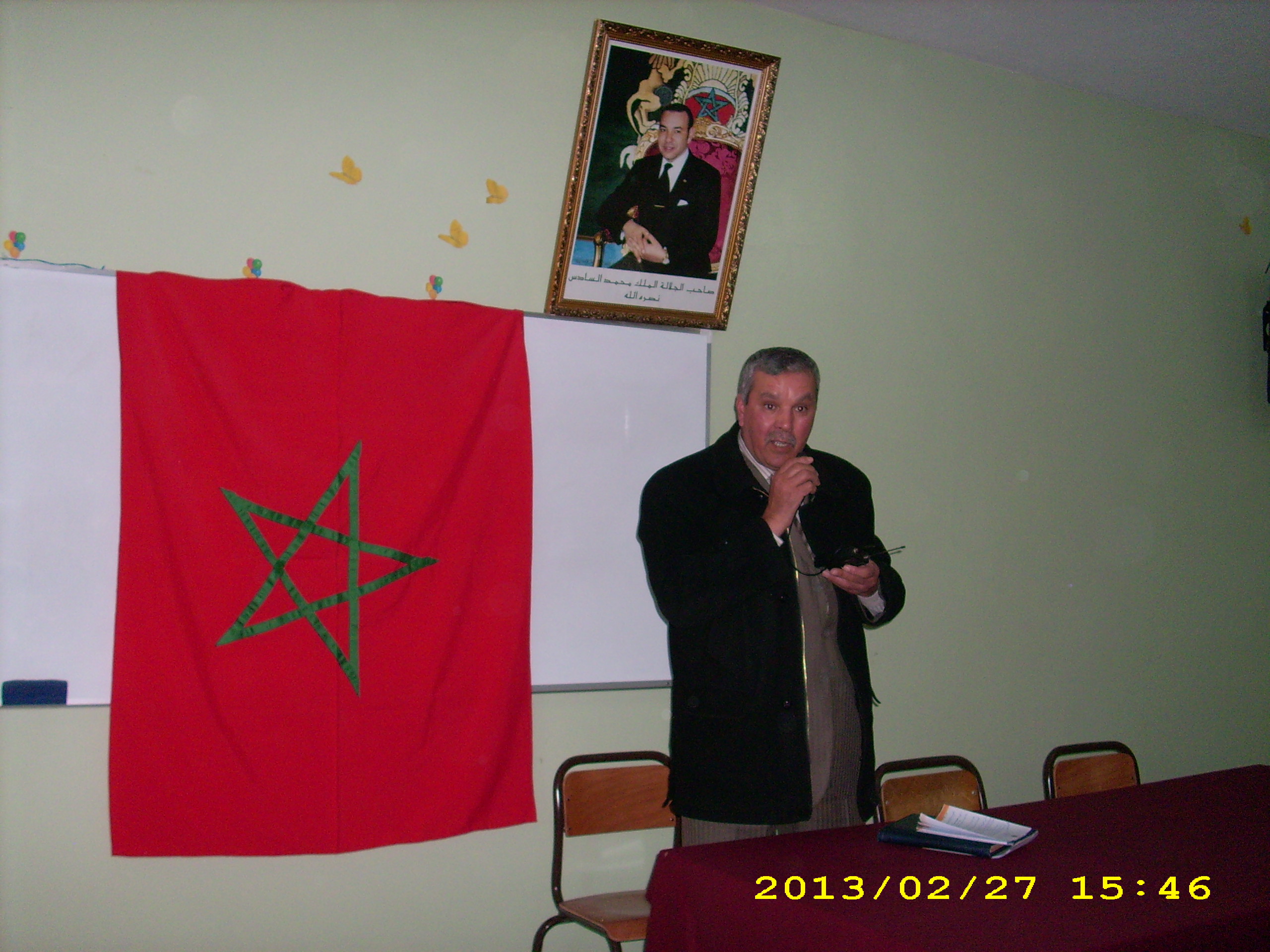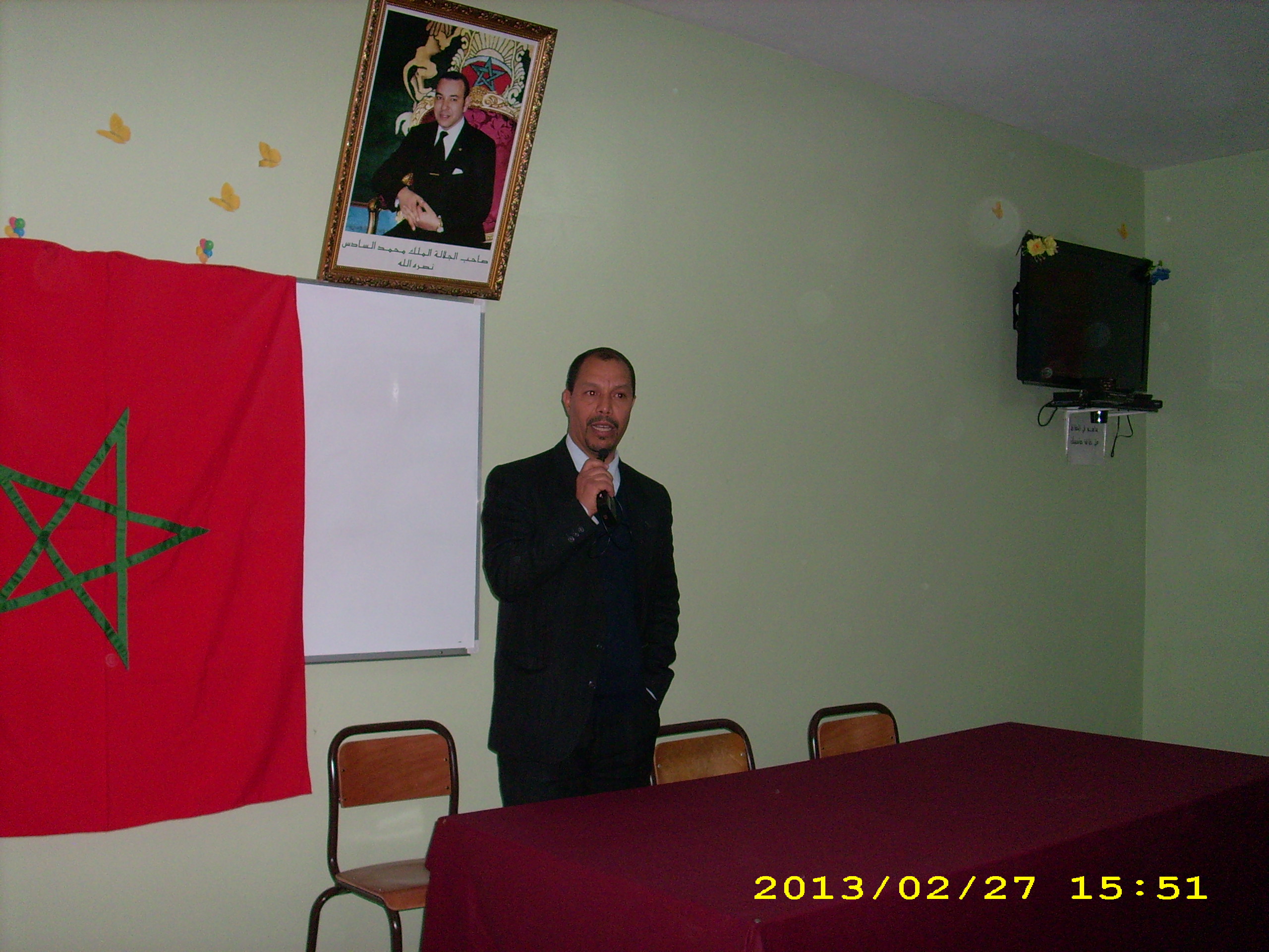 بعد دلك تناول الكلمة السيد رئيس الجمعية الذي ذكر بان هذه المبادرة تأتي  في إطار تنزيل مضامين البرنامج السنوي لأنشطة الجمعية برسم موسم 2012/2013 وكذا التحفيز على إحداث نوادي سينمائية بالمؤسسات التعليمية و تفعيلها من أجل تنشيط الحياة المدرسية و توظيف السينما و السمعي البصري عموما لتبليغ الرسالة التربوية بشكل فعال و ناجع و إشاعة ثقافة الصورة بمؤسسات المجال القروي. لينتقل بالحاضرين لمشاهدة ثلاثة افلام تربوية قصيرة هي :
