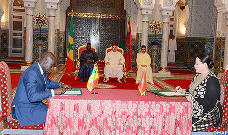 Des accords et conventions portant sur un protocole de coopération entre le Conseil Economique, Social et Environnemental du Royaume du Maroc et le Conseil Economique, Social et Environnemental de la République du Sénégal, sur la coopération entre les deux pays dans le domaine des Affaires Islamiques, sur la coopération entre les deux pays dans le domaine du Tourisme, sur un mémorandum d’entente dans le domaine du transport maritime, sur une convention relative à un partenariat économique entre les instances patronales des deux pays, sur la coopération entre la Caisse de Dépôt et de Gestion du Royaume du Maroc et la Caisse des Dépôts et des Consignations du Sénégal et, enfin, sur une convention relative à un partenariat entre l’Agence de Développement de l’Aquaculture du Royaume du Maroc et l’Agence Nationale de l’Aquaculture de la République du Sénégal.
