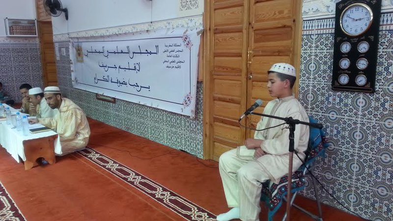 في إطار العناية بالقرآن الكريم، وتشجيعا لتلاميذ وتلميذات مراكز تحفيظ القرآن بمدينة جرسيف، نظم المجلس العلمي المحلي بمسجد بدر مسابقة قرآنية لفائدة تلاميذ وتلميذات ثلاث مراكز للتحفيظ بمساجد: بدر، تجزئة الراشيدية 12 وم. الرحمة، بتنسيق مع جمعية مسجد بدر، بعد عصر يوم الأحد 06 أبريل 2014م حضره إلى جانب أعضاء لجنة التحكيم أعضاء خلية شؤون المرأة وقضايا الأسرة التابعة للمجلس والمحفظات وآباء وأولياء التلاميذ وجمع من المحبين والمحبات لكتاب الله تعالى.