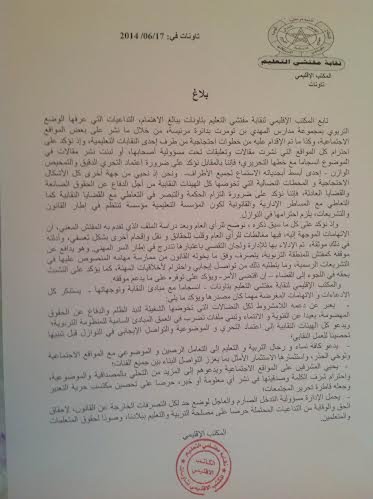 بلاغ المكتب الإقليمي لنقابة مفتشي التعليمي بتاونات