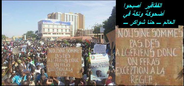 هكذا أصبحت الجزائر مضربا للمثل السيئ في إفريقيا حتى بالنسبة لبوركينافاسو ، حتى ان الشعب البوركانابي رفع لا فتات كتب عليها » نحن لسنا هم الجزائر …حتى تعدل الدستور لعهدة أخرى … »