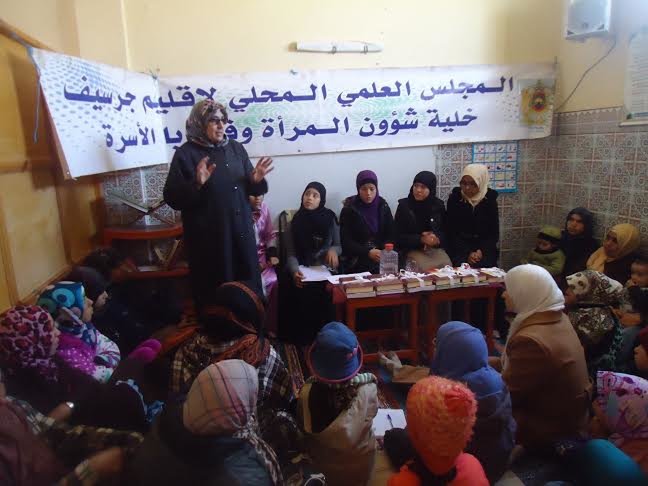 في إطار الأنشطة الثقافية المبرمجة لهذا الموسم، وبمناسبة ذكرى المولد النبوي الشريف لموسم 1436هـ، وفي إطار الانفتاح على ساكنة المجال القروي بإقليم جرسيف، وبتنسيق مع المندوبية الإقليمية للشؤون الإسلامية، نظمت خلية شؤون المرأة وقضايا الأسرة التابعة للمجلس العلمي بجرسيف مساء يوم الأحد 22 فبراير 2015م أمسية دينية ومسابقتين لفائدة النساء والأطفال بمسجد اولاد صالح بجماعة هوارة أولاد رحو.